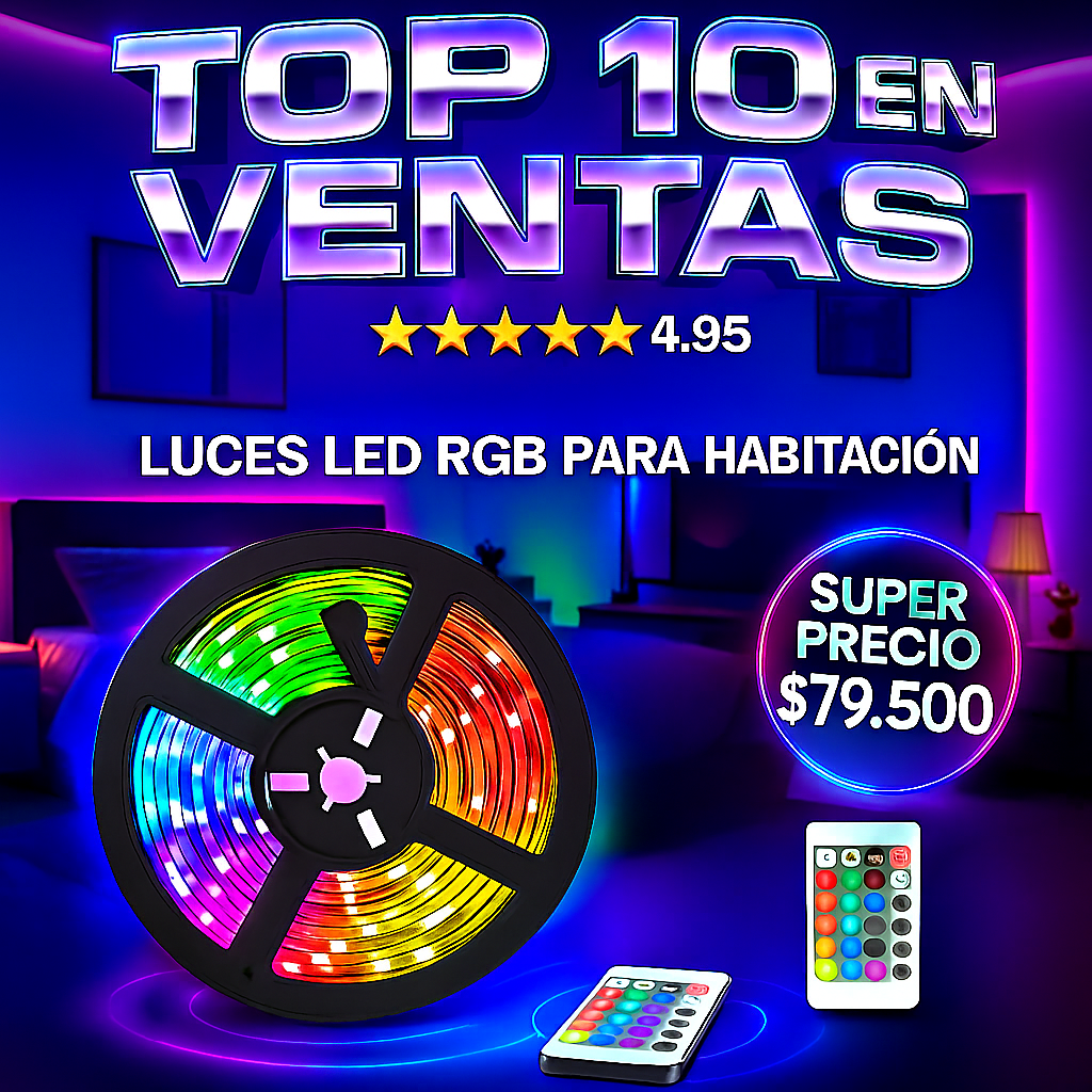 ✨ Transforma cualquier espacio con luces LED de colores que puedes controlar al instante. ¡Dale vida a tu habitación sin gastar mucho!